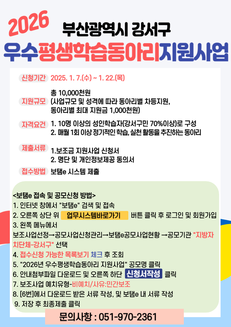 2026년 우수 평생학습동아리 지원사업 공고 안내