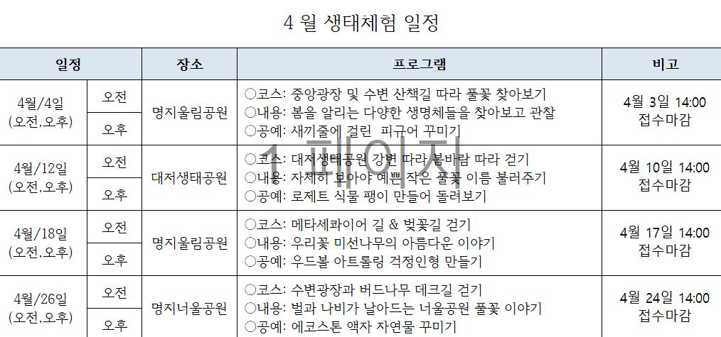 2026년 4월 생태체험 프로그램 안내
